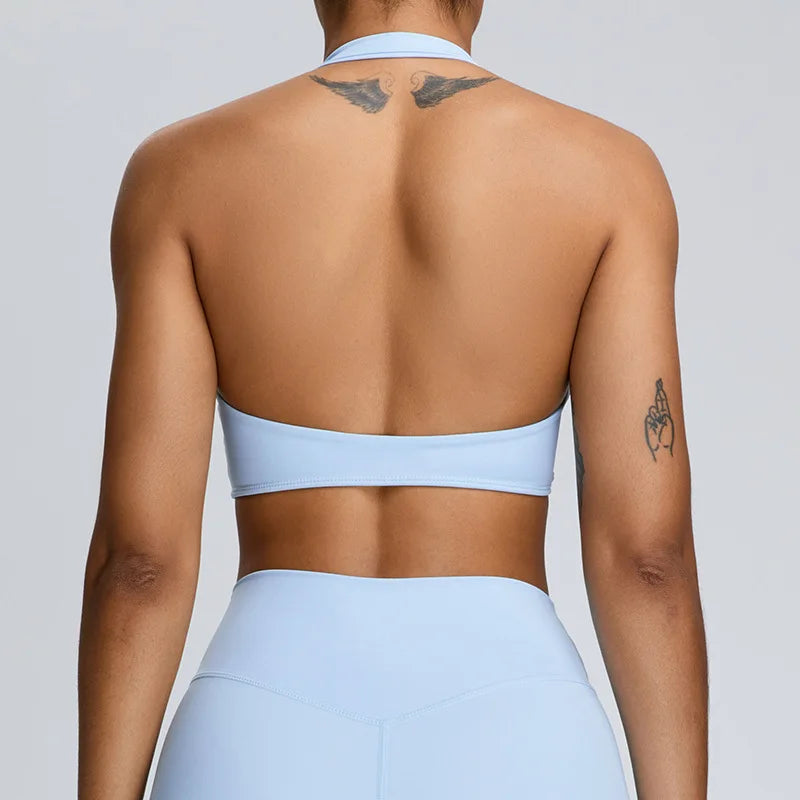 Maximize support and style with this backless push-up sports bra. The halter neckline keeps everything lifted, while the open back design adds a bold, breathable finish. Perfect for intense workouts, yoga sessions, or when you want to turn heads in fitness wear.